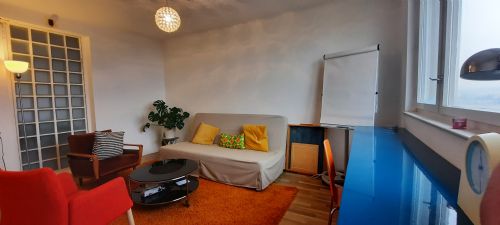 Der Gruppenraum biete Platz für bis zu 15 Personen und eignet sich perfekt für Gruppen und Supervisionen, wird aber auch für Einzel-, Paar- und Familien-Settings gerne genutzt.